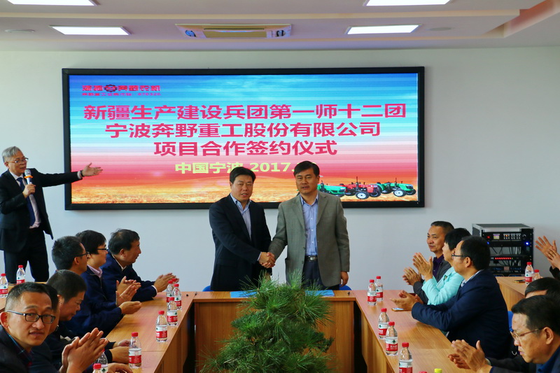 在三樓會(huì)議室,全體經(jīng)銷商朋友見(jiàn)證了寧波奔野重工股份有限公司與新疆生產(chǎn)建設(shè)兵團(tuán)第一師十二團(tuán)舉行的項(xiàng)目合作簽約儀式,為公司進(jìn)一步拓展新疆市場(chǎng)、擴(kuò)大產(chǎn)能、配合國(guó)家政策、做好援疆工作提供了可靠的保證。