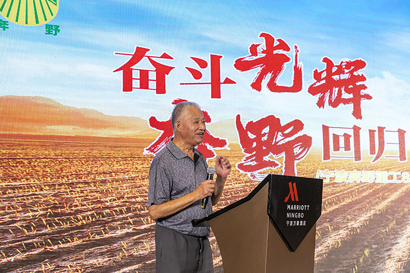 80多歲高齡的原寧波拖拉機廠廠長顧興華代表來簽約現(xiàn)場見證的三十余位原寧波拖拉機廠高管們上臺祝賀。他全程脫稿,娓娓道來,聲情并茂,聲音幾度哽咽,再次將人們拉回到那段崢嶸歲月中,感受這奔野品牌創(chuàng)建的不易。無法抑制的激動與興奮寫滿他的臉頰,奔野品牌的光輝從他的言語中散發(fā)開來,浸潤著、感染著在場的每一個人。