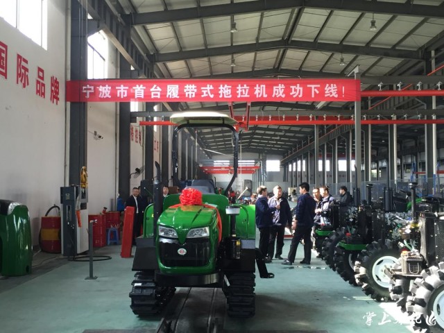 《奉視新聞》報(bào)道(記者 何騰濤 楊夢(mèng)園 )2016年12月29日上午,寧波首臺(tái)履帶式拖拉機(jī)在我區(qū)浙拖奔野(寧波)拖拉機(jī)制造有限公司成功下線。